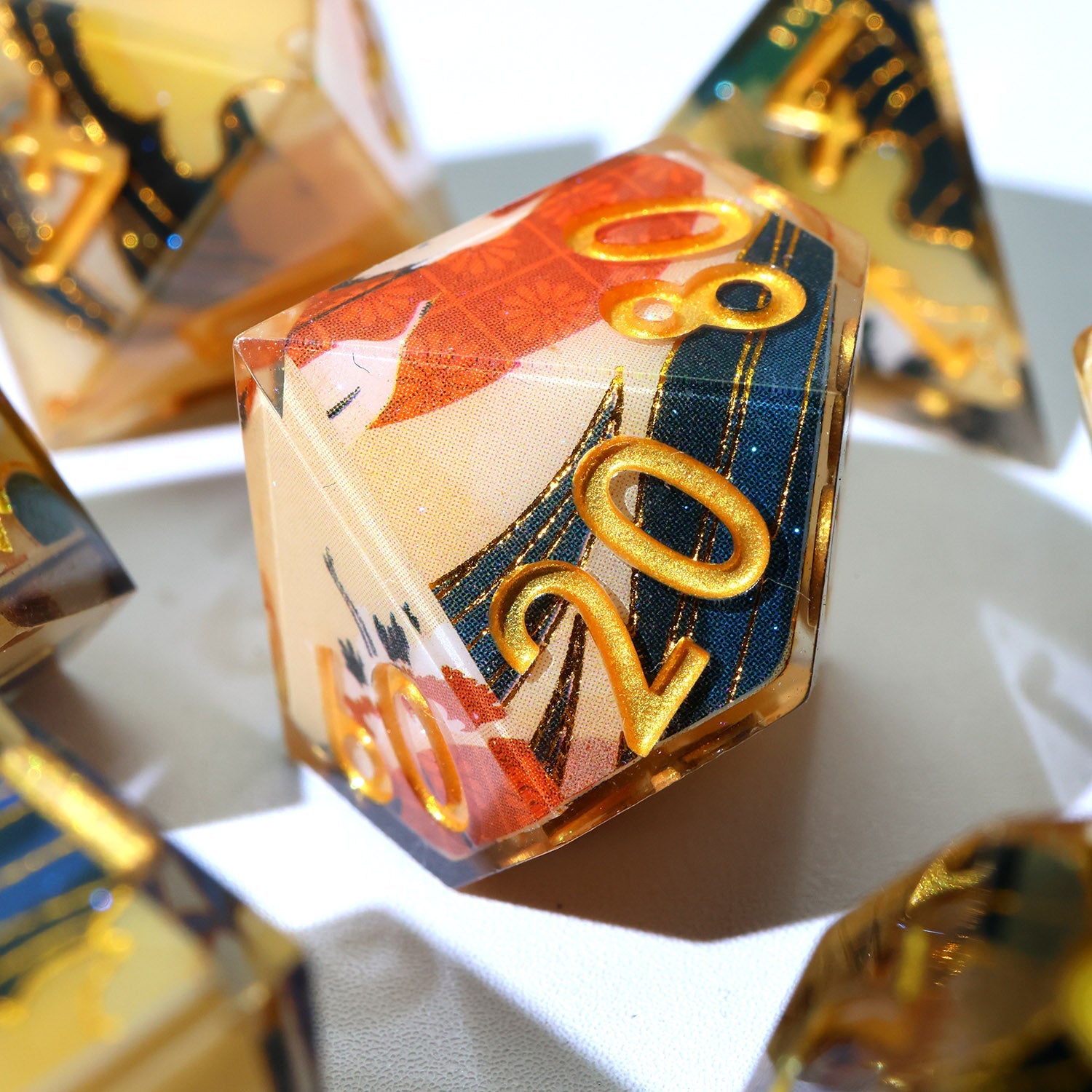 Every Art Core Sharp Edge dice set is meticulously handmade, ensuring that each piece is unique and of the highest quality. The sharp edges guarantee fair rolls, while the beautifully detailed core designs—ranging from vibrant flora to enchanting fauna—add an element of artistry to your gameplay. These dice are a perfect blend of form and function, designed to captivate both players and collectors alike.